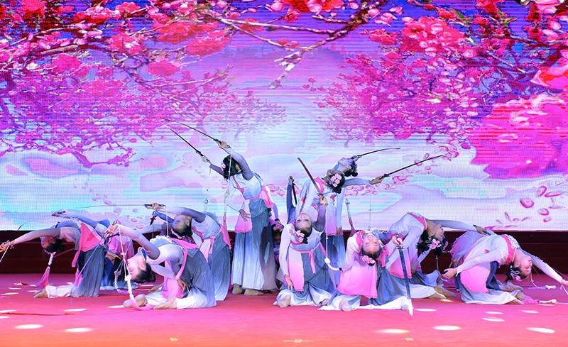 由衡鋼園區(qū)企業(yè)聯(lián)合隊(duì)登臺(tái)展現(xiàn)的廠歌《中國(guó)衡鋼,世界的星》《不忘初心》,以大合唱的方式拉開(kāi)晚會(huì)文藝表演的序幕。傣族舞《年年有余》、啦啦操《燃燒你的卡路里》、舞蹈《追憶1911》相繼登場(chǎng),既讓觀眾們感受到幸福中國(guó)的現(xiàn)在,又讓大家不忘苦難中國(guó)的過(guò)去。歌伴舞《共圓中國(guó)夢(mèng)》唱出我們中國(guó)人對(duì)美好生活的堅(jiān)定信心與不懈追求;體育舞蹈《舞動(dòng)青春》展現(xiàn)年青一代的勃勃微生機(jī)與活力;由衡鋼社區(qū)鋼花藝術(shù)團(tuán)帶來(lái)的舞蹈《沂蒙情》,展現(xiàn)的是革命時(shí)期民擁軍、軍愛(ài)民的軍民一家親,表達(dá)廣大退休員工對(duì)衡鋼的熱愛(ài);雙人舞《把一切獻(xiàn)給黨》展現(xiàn)了華夏兒女無(wú)論多遠(yuǎn),心懷祖國(guó)堅(jiān)定跟黨走的信念;時(shí)裝舞臺(tái)秀《印象雁城—非遺》、女子群舞《梅礪香》、爵士舞《青春之美》將時(shí)尚與傳統(tǒng)表現(xiàn)的淋漓盡致。衡鋼工會(huì)選送、衡鋼合唱團(tuán)大氣磅礴演唱《紅旗飄飄》,將晚會(huì)引向高潮。全體公司領(lǐng)導(dǎo)走上舞臺(tái)與全場(chǎng)觀眾同唱《我和我的祖國(guó)》,大家激情澎湃,共祝愿祖國(guó)好。